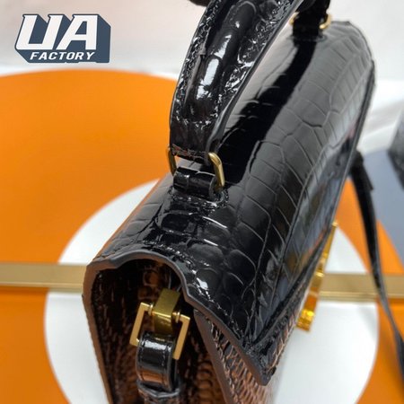 Cassandra Mini Top Handle Bag In Crocodile-Embossed Shiny Leather