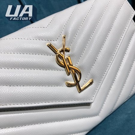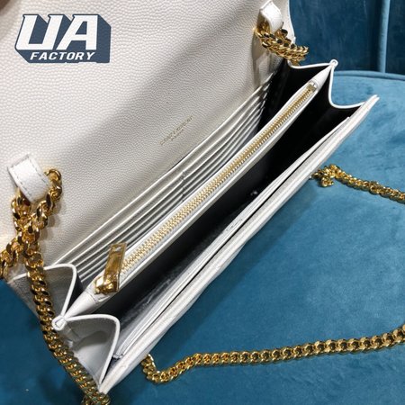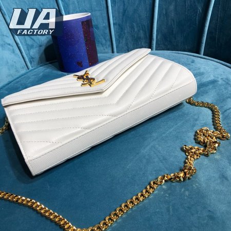 Saint Laurent MONOGRAM Grain Textured Jacquard Leather Chain Crossbody Bag White