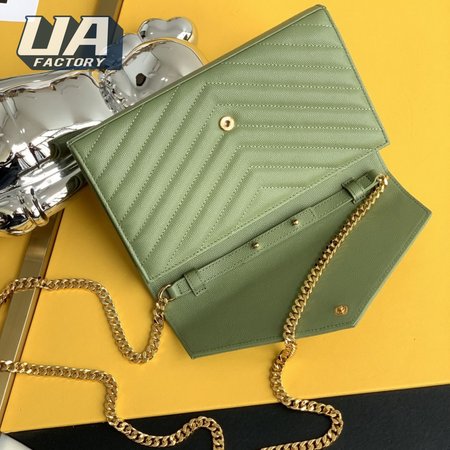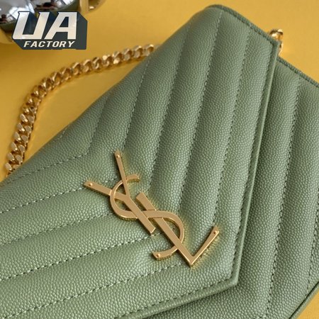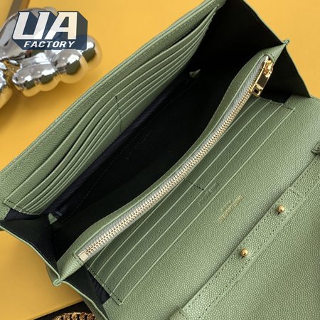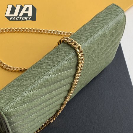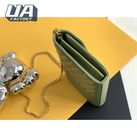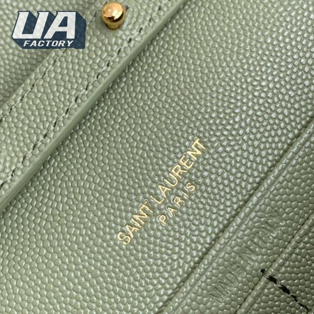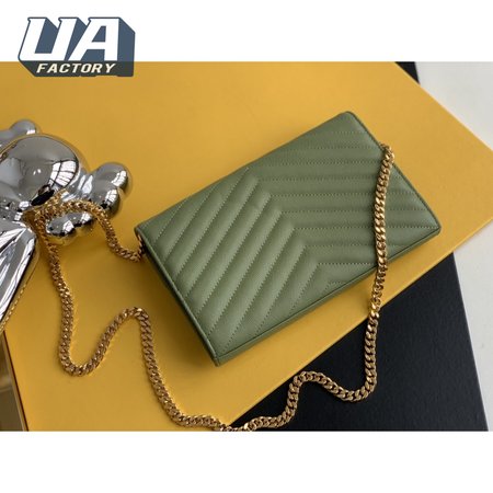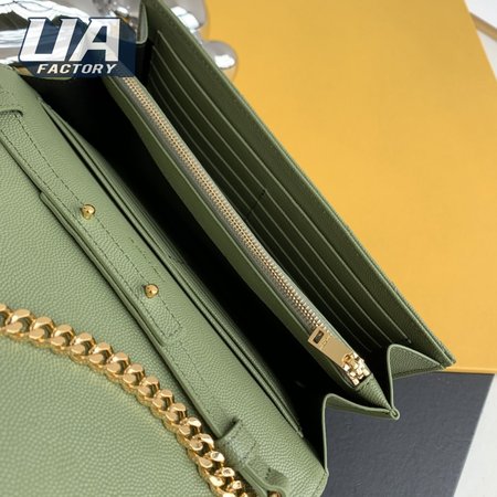 Saint Laurent Monogram Embossed Light Sage Leather Chain Wallet