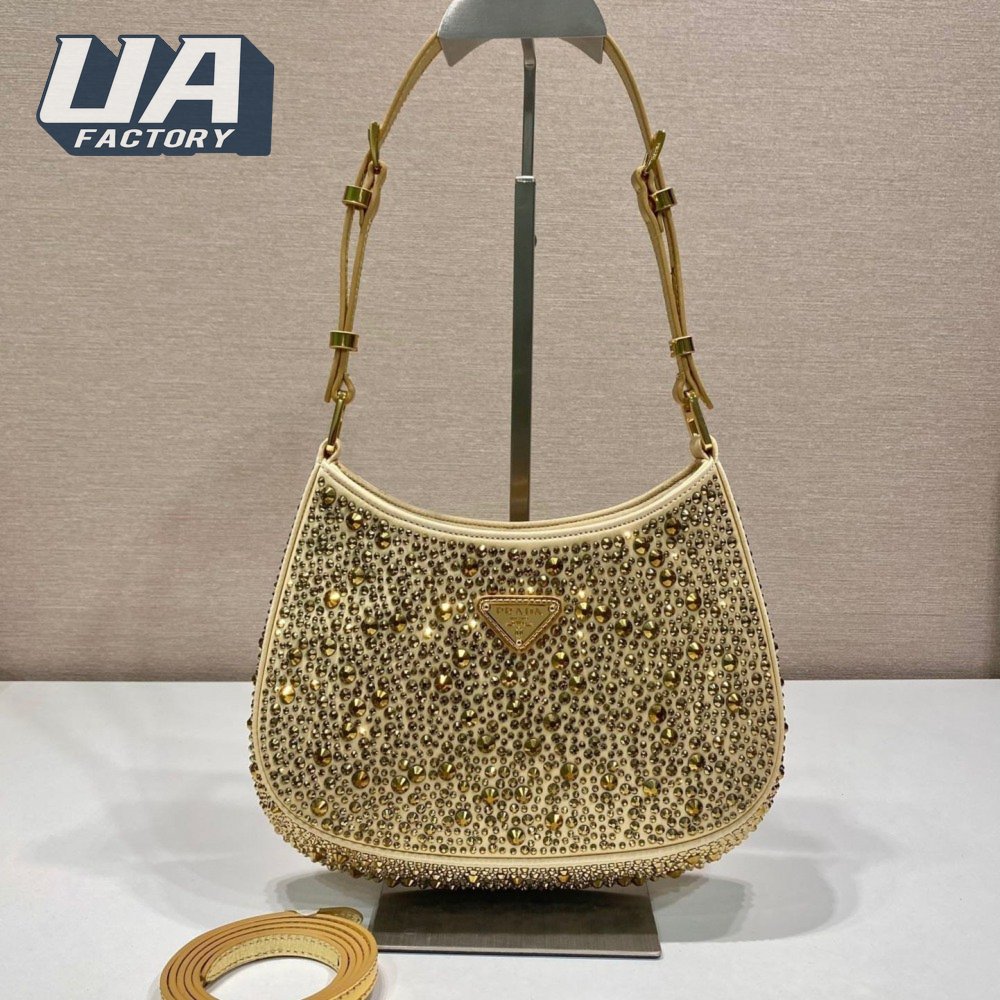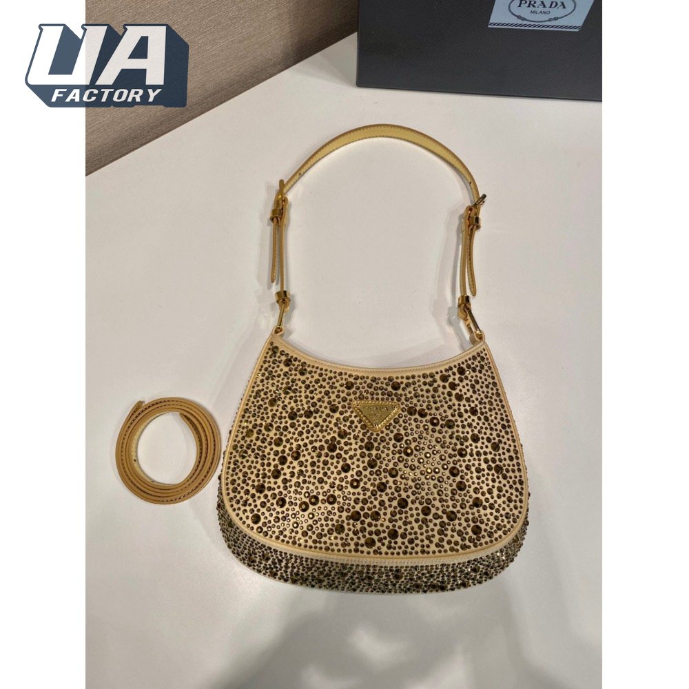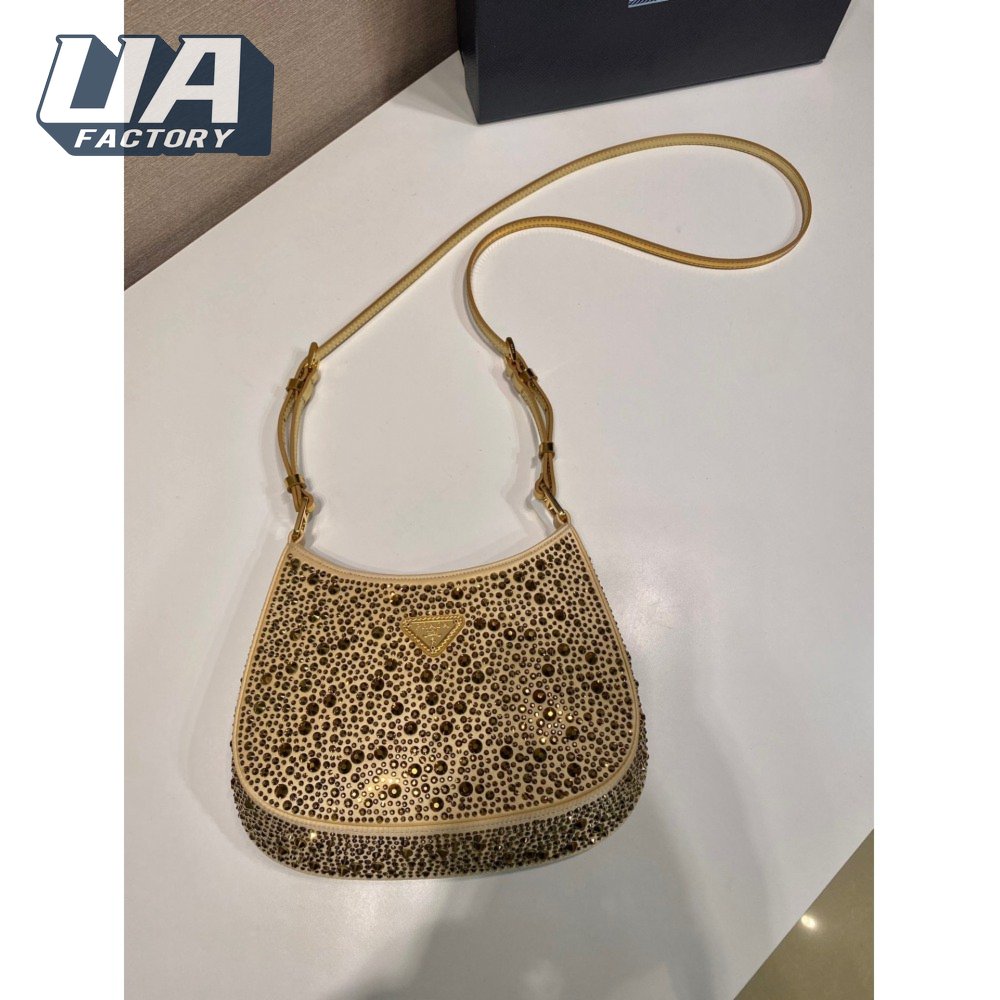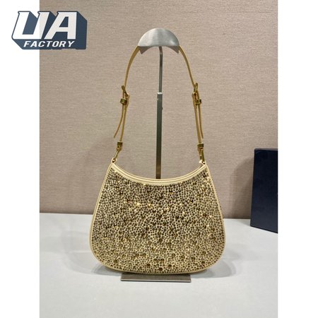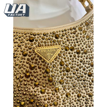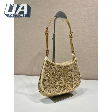 Prada Cleo Satin Bag With Crystals Platinum 1BC169