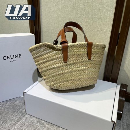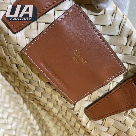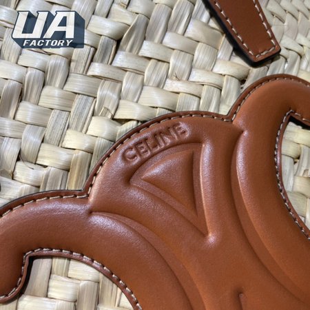 Celine Triomphe Classic Basket Bag In Palm Leaf Calfskin Tan