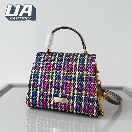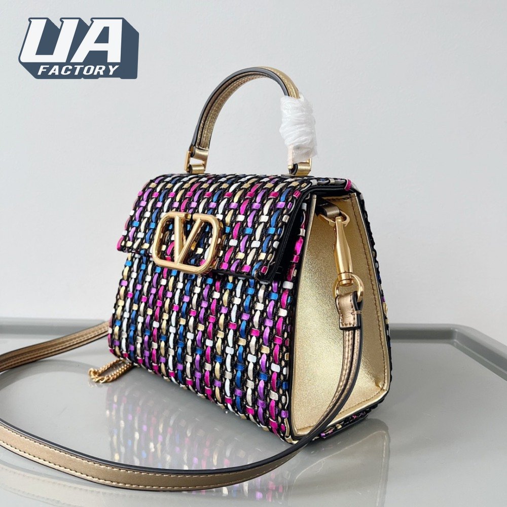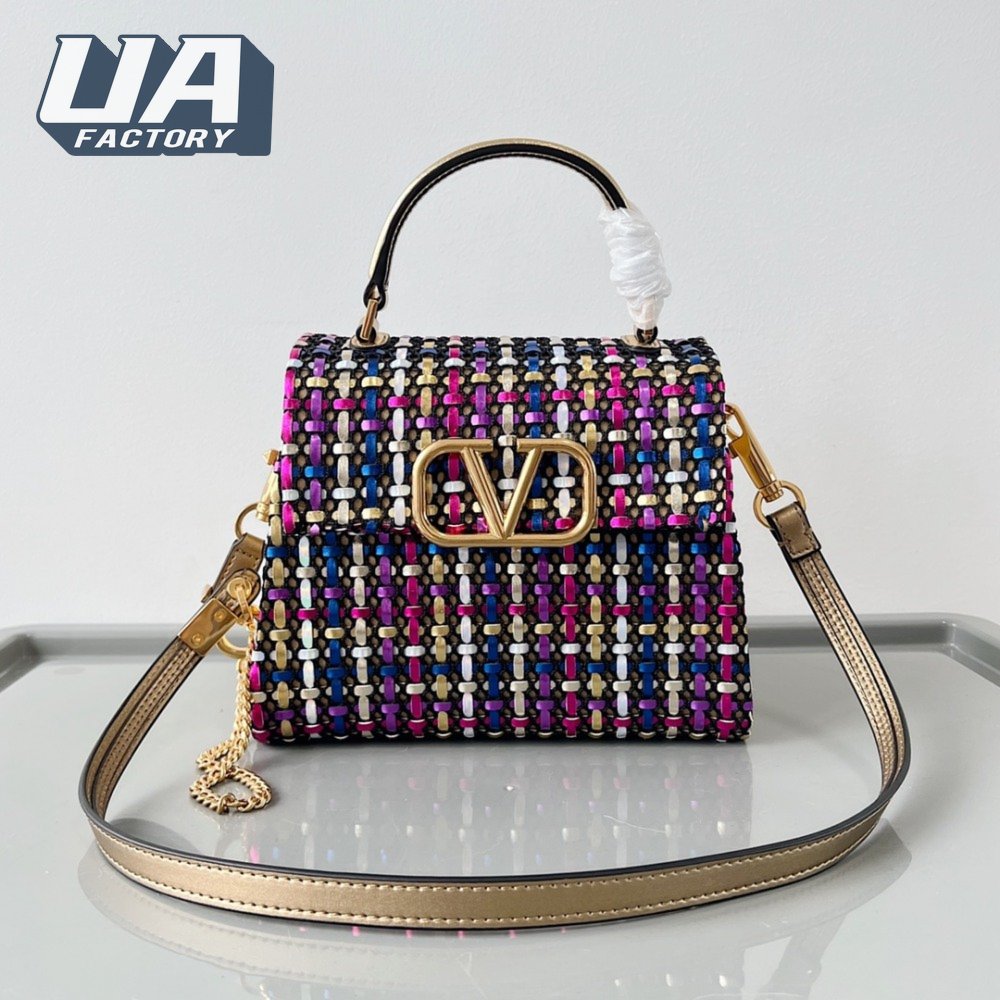 Valentino Small Vsling Handbag In Woven Metallic Nappa