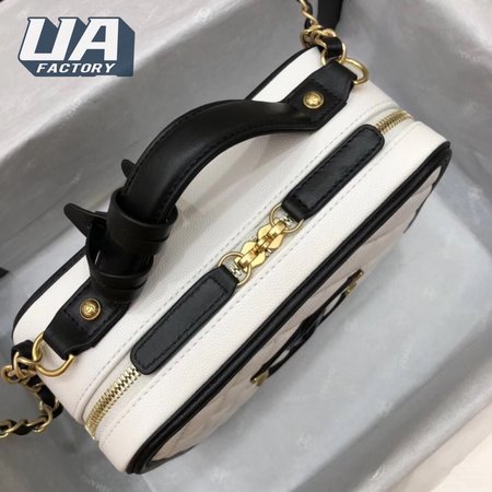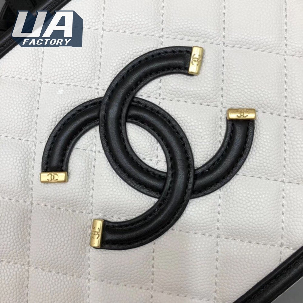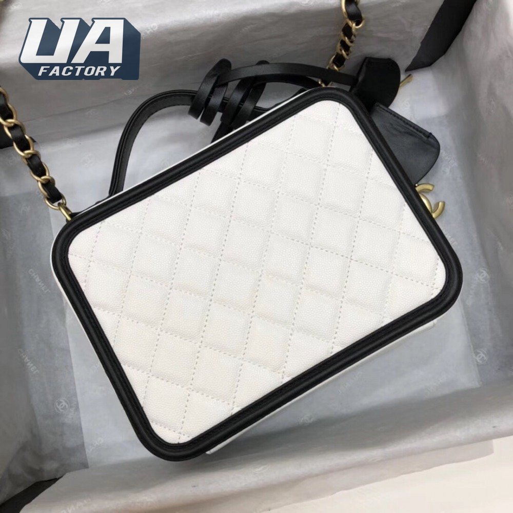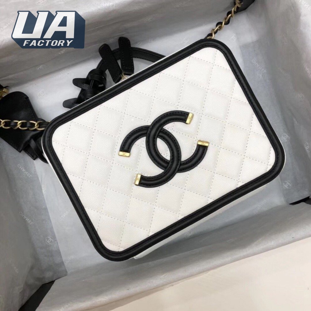 Chanel White & Black Quilted Caviar Leather