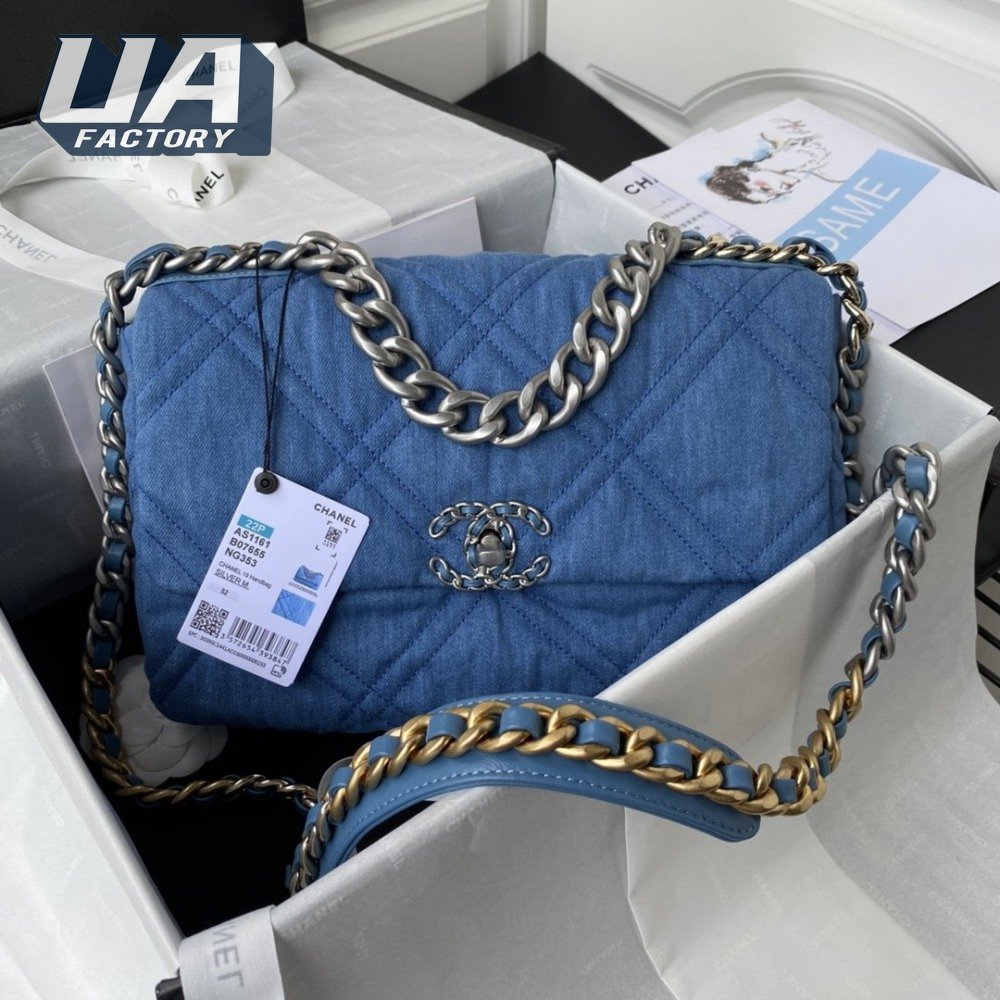 Chanel Denim Quilted Medium Chanel 19 Flap Bag