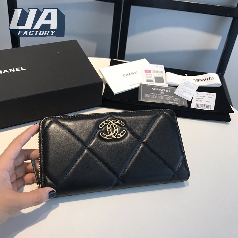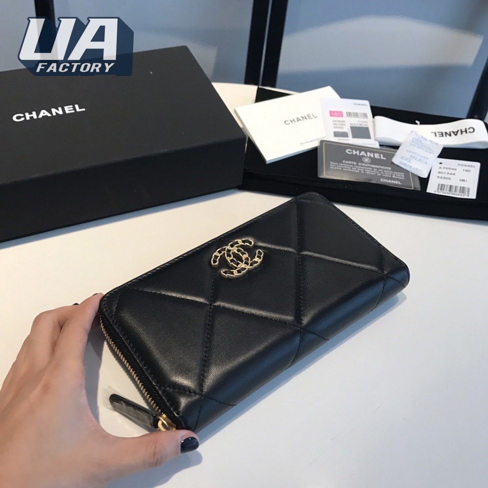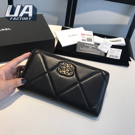 Chanel 19 Long Zipped Wallet Black