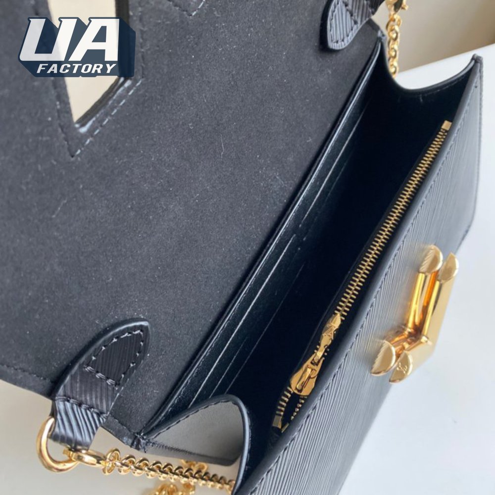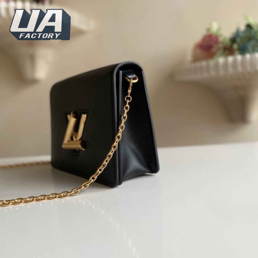 Twist Chain Wallet Epi Grained Leather Black
