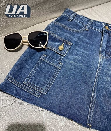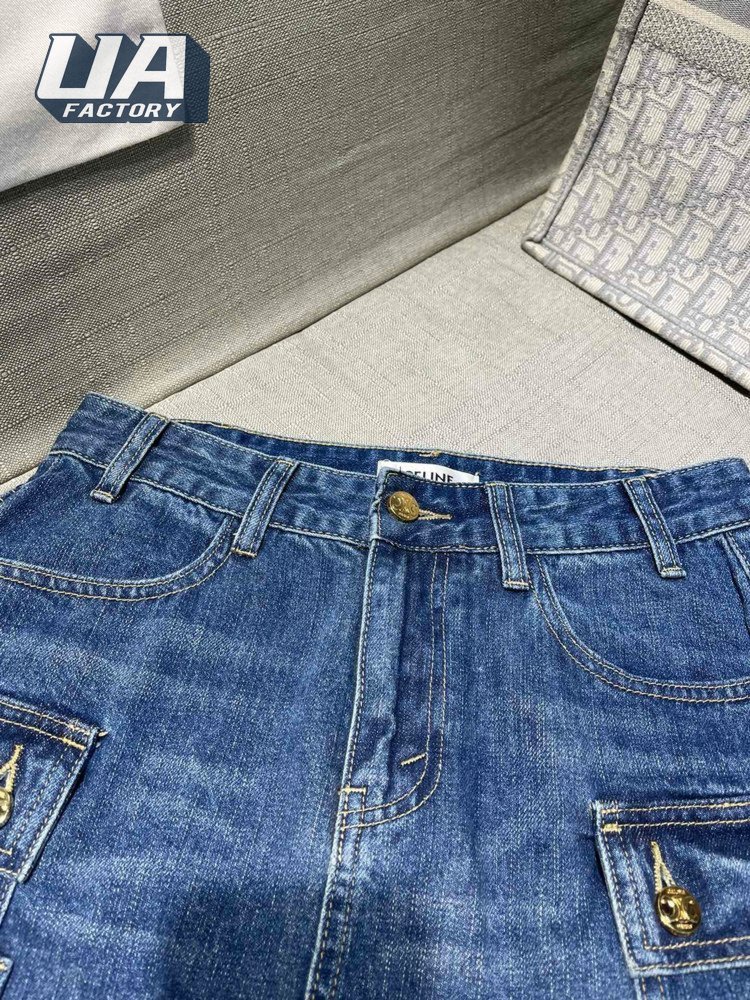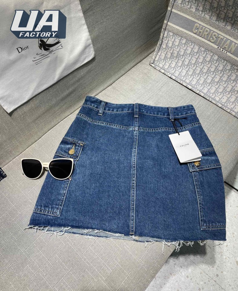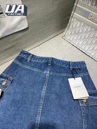 Celine Cargo Mini Skirt In Dark Union Wash Denim S-L