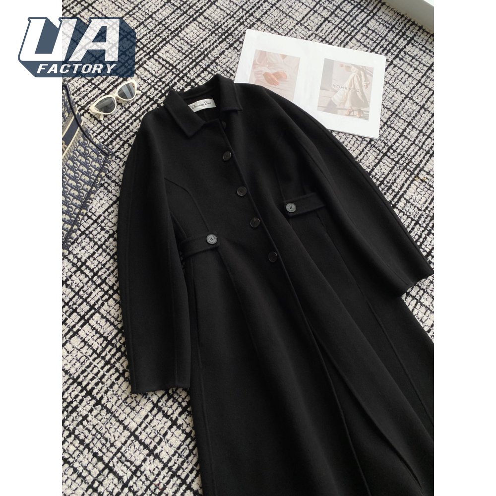 Dior Single-Breasted Long Double-Faced Cashmere Coat Black