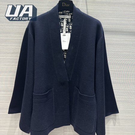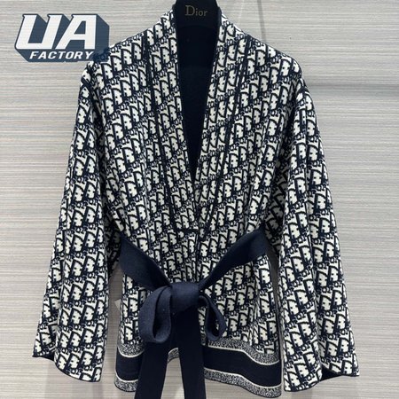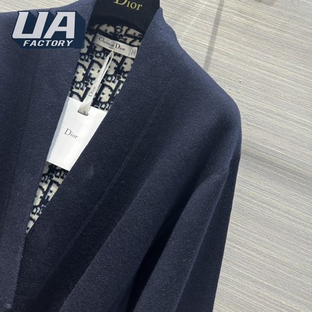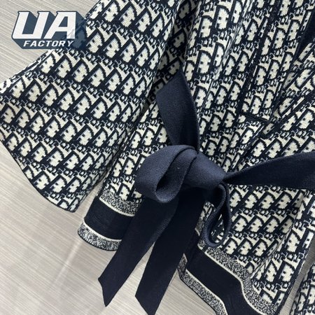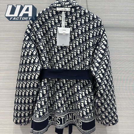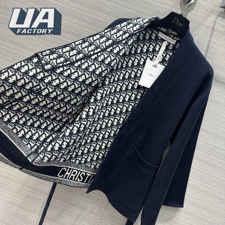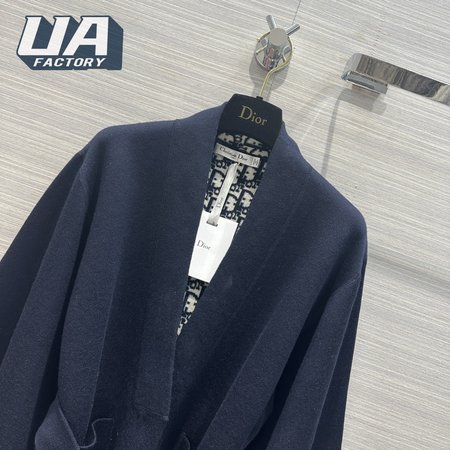Dior Belted Kimono Jacket Navy Blue Double-Sided Wool And Silk With Dior Oblique Interior