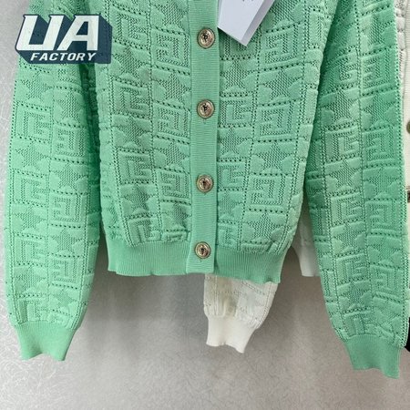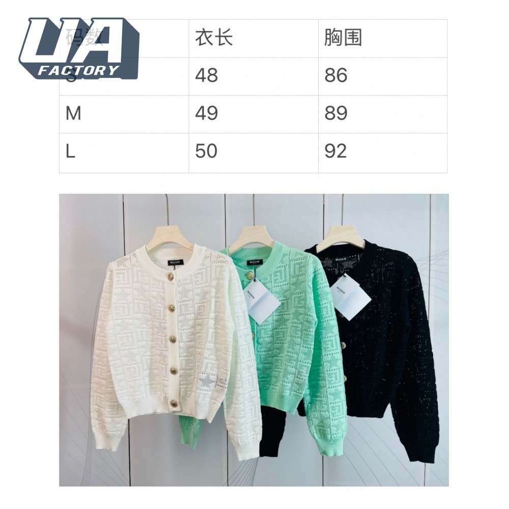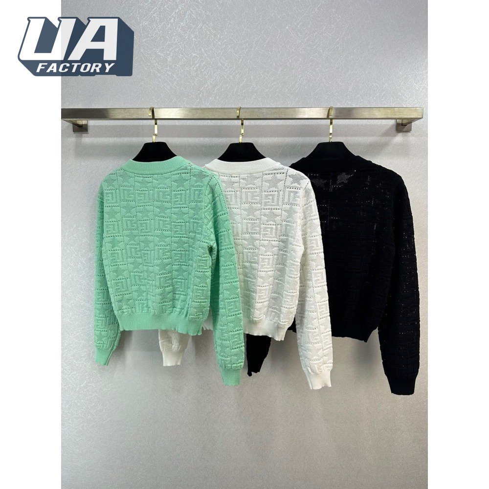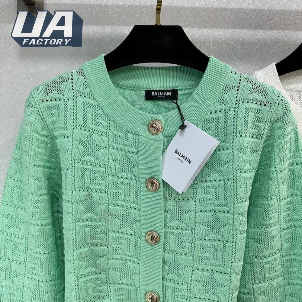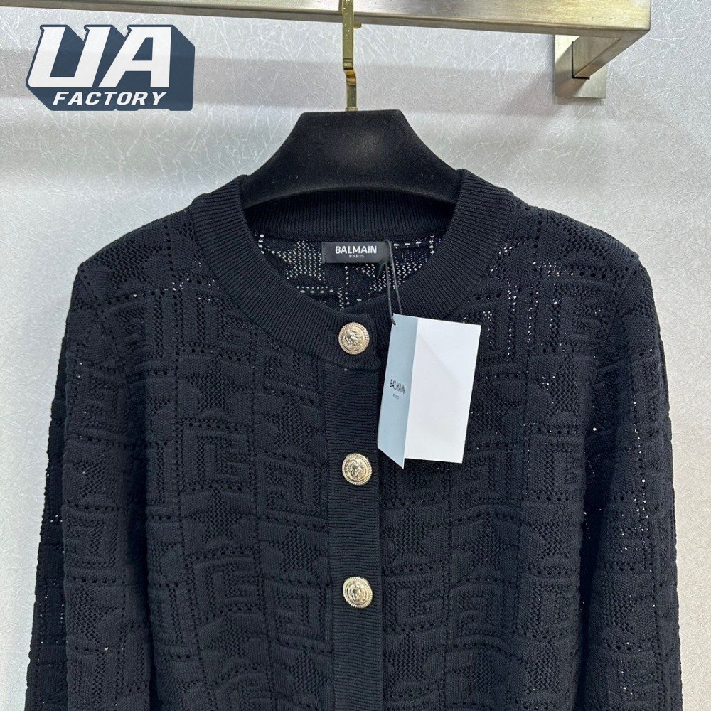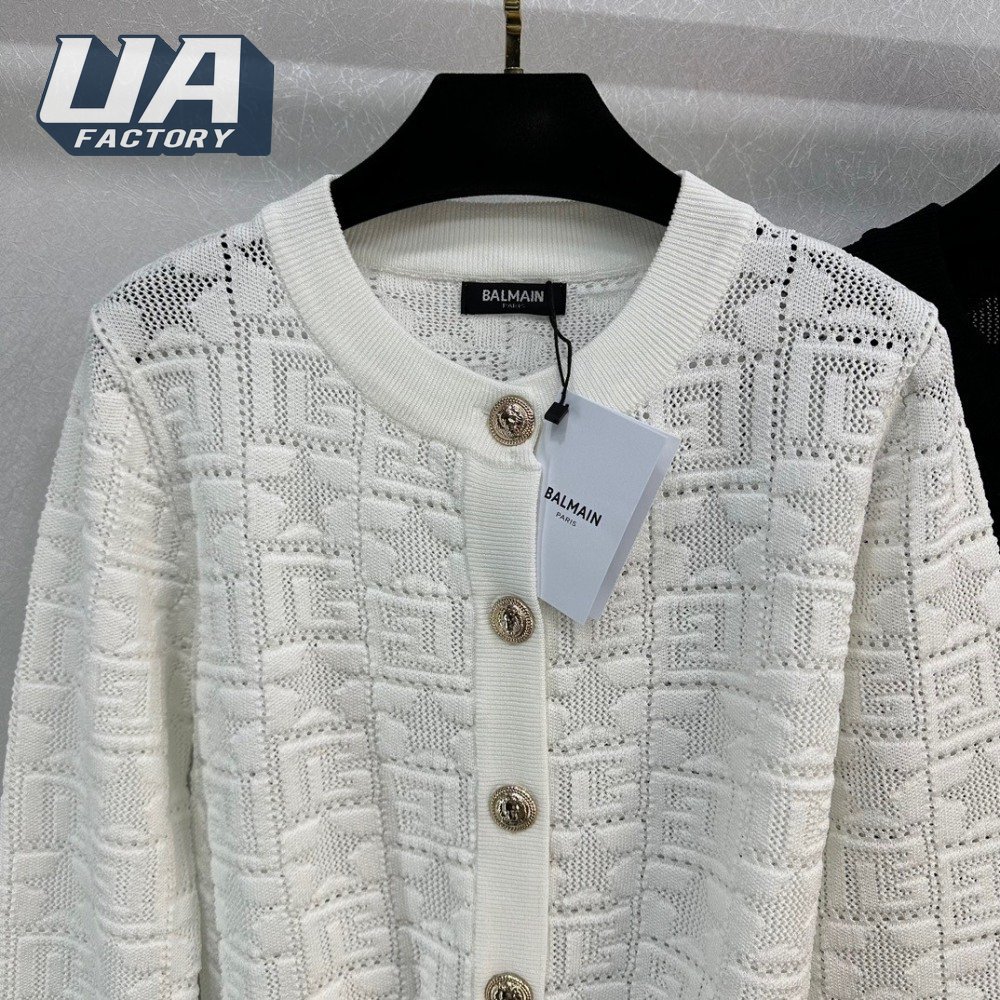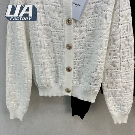 Balmain Jacquard Weave Round Collar Cardigan Sweater
