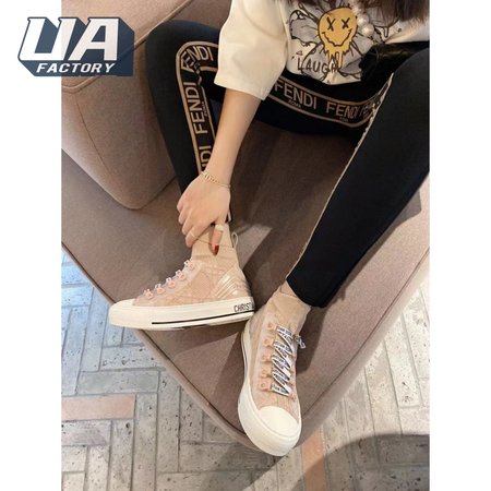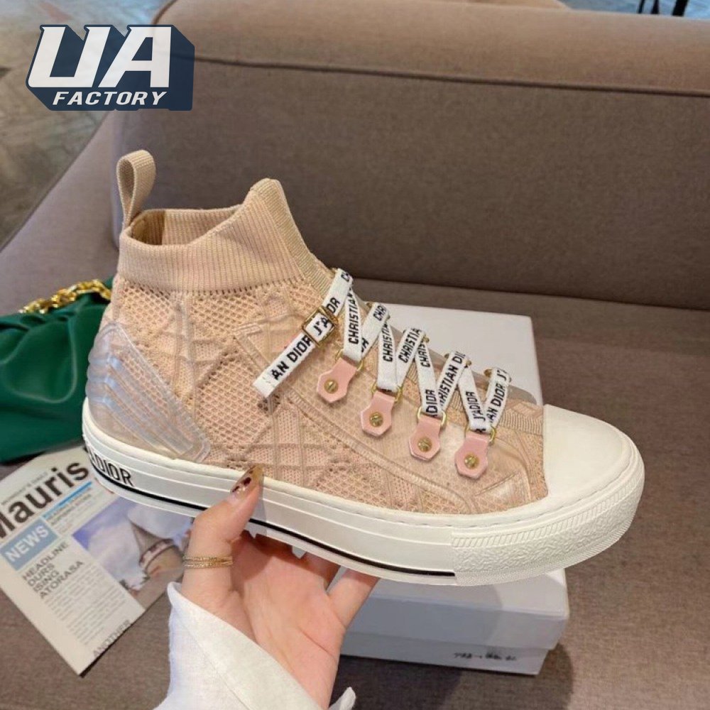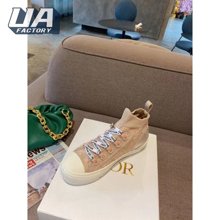 Dior Beige Knit And Leather Walk'N'Dior High Top Sneakers