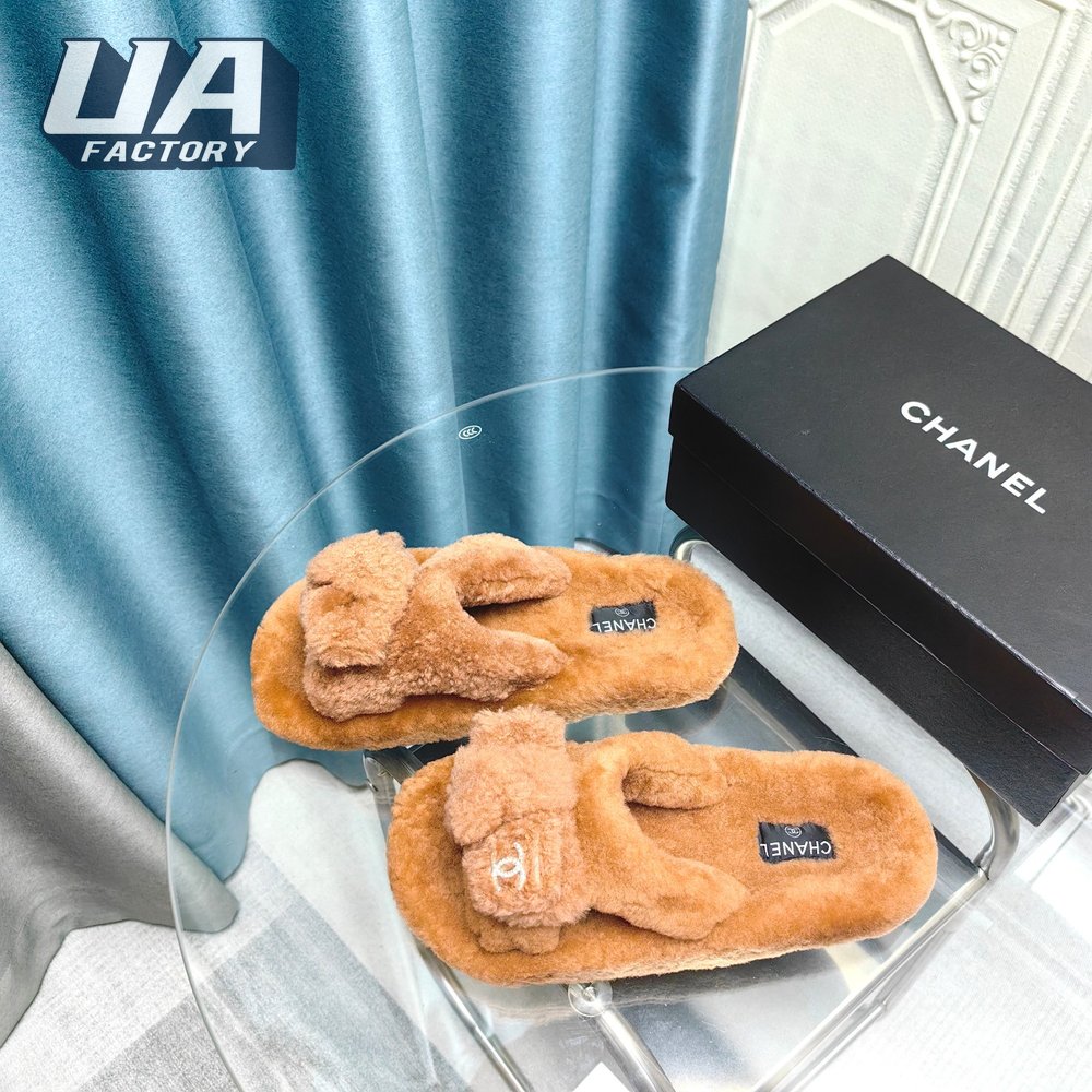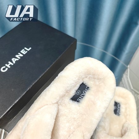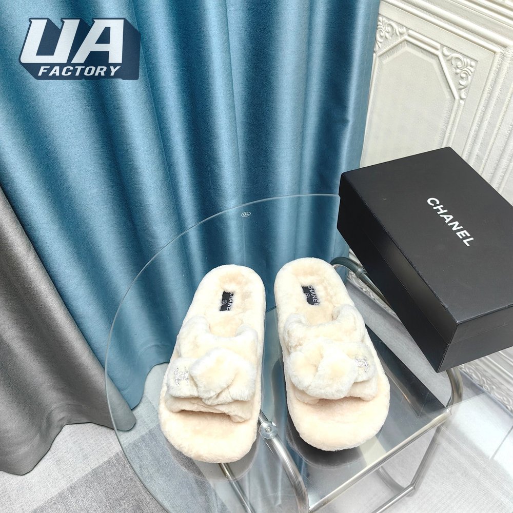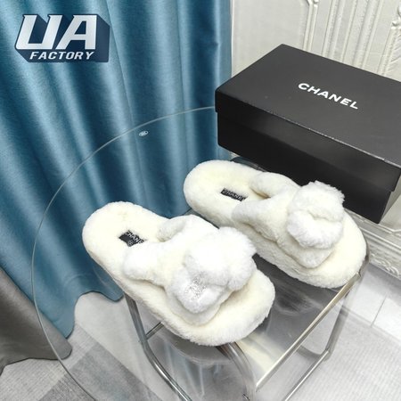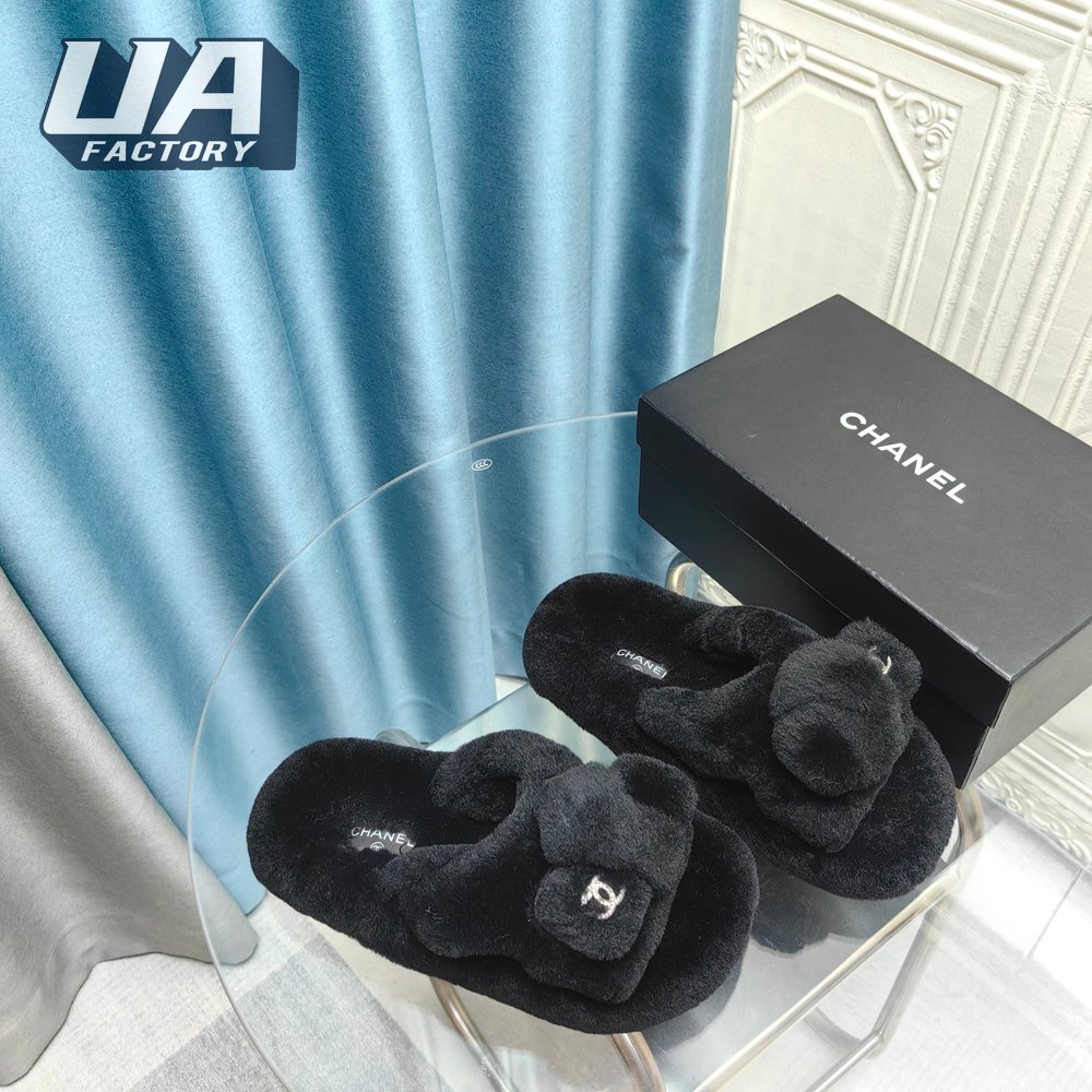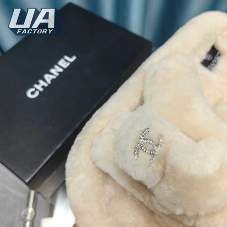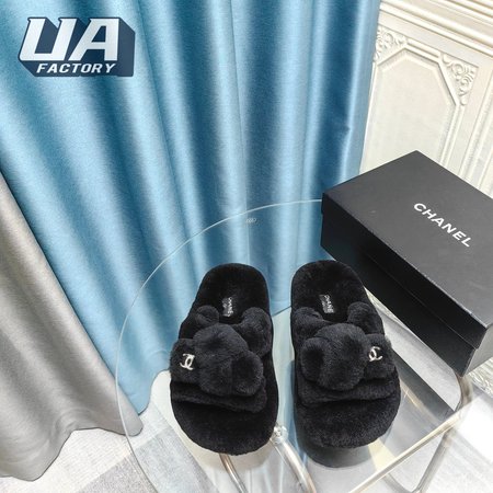 Chanel Women's Cross Band Slippers Fuzzy Slippers