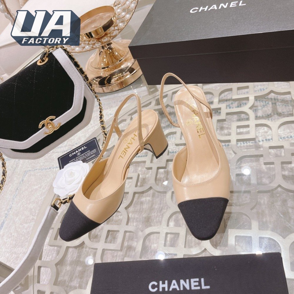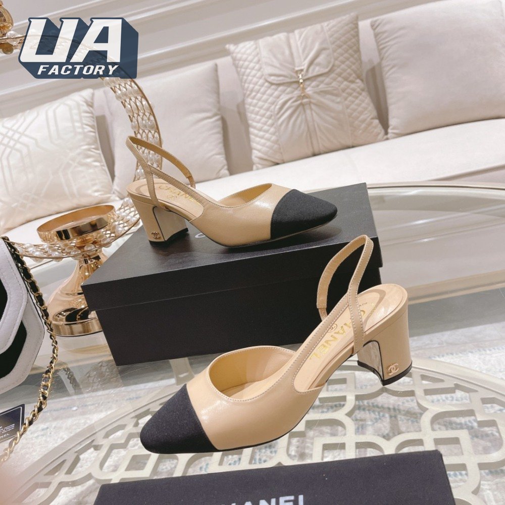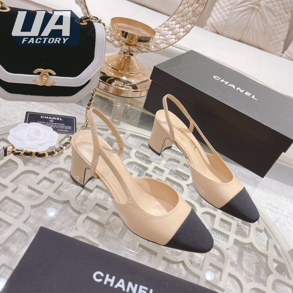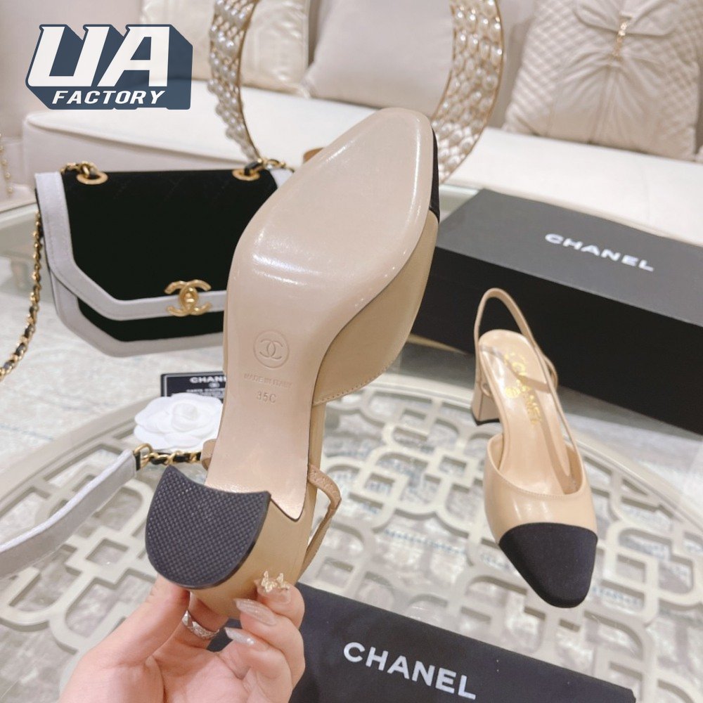 Chanel Slingbacks Goatskin & Grosgrain Beige/Black 34-40