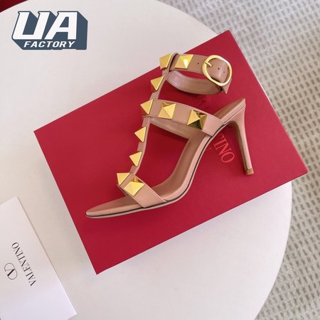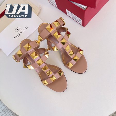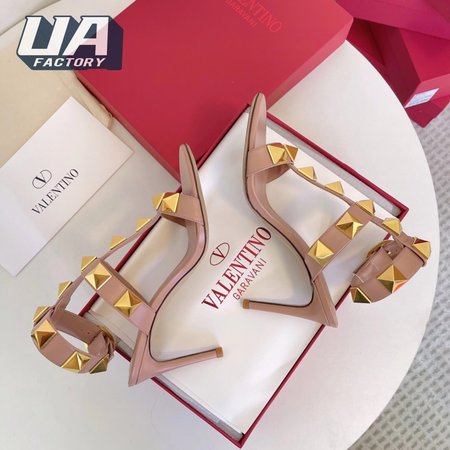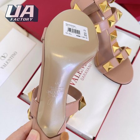 Valentino Roman Stud Calfskin Sandal 100mm Rose Cannelle 35-39