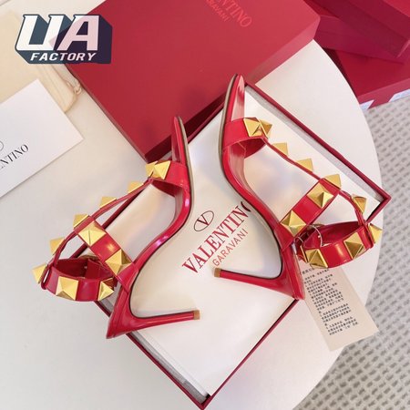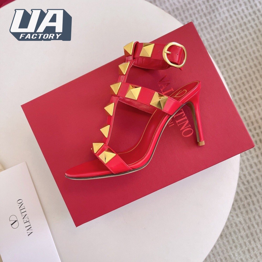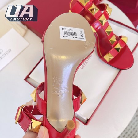 Valentino Roman Stud Calfskin Sandal 100mm Red 35-39