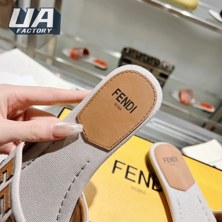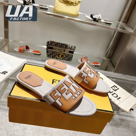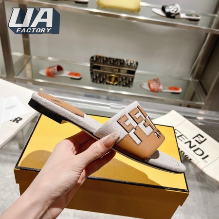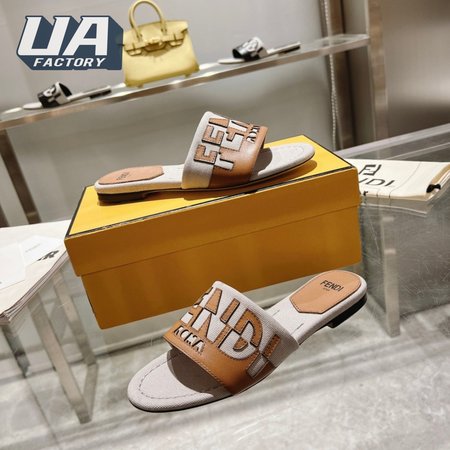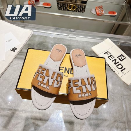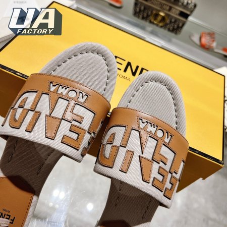 Fendi Women's Cuoio Grezzo Signature Bicolor Logo Slide Sandals