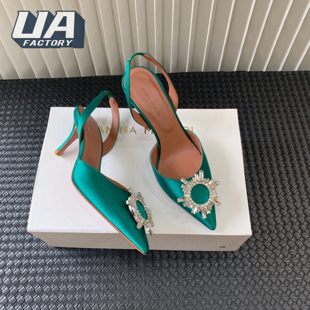 Amina Muaddi Camelia Crystal-Embellished Satin Slingback Courts