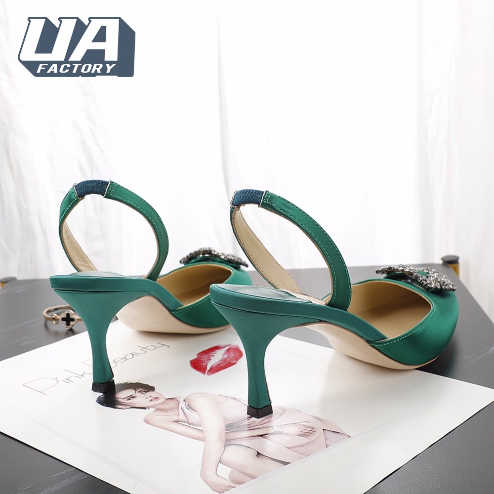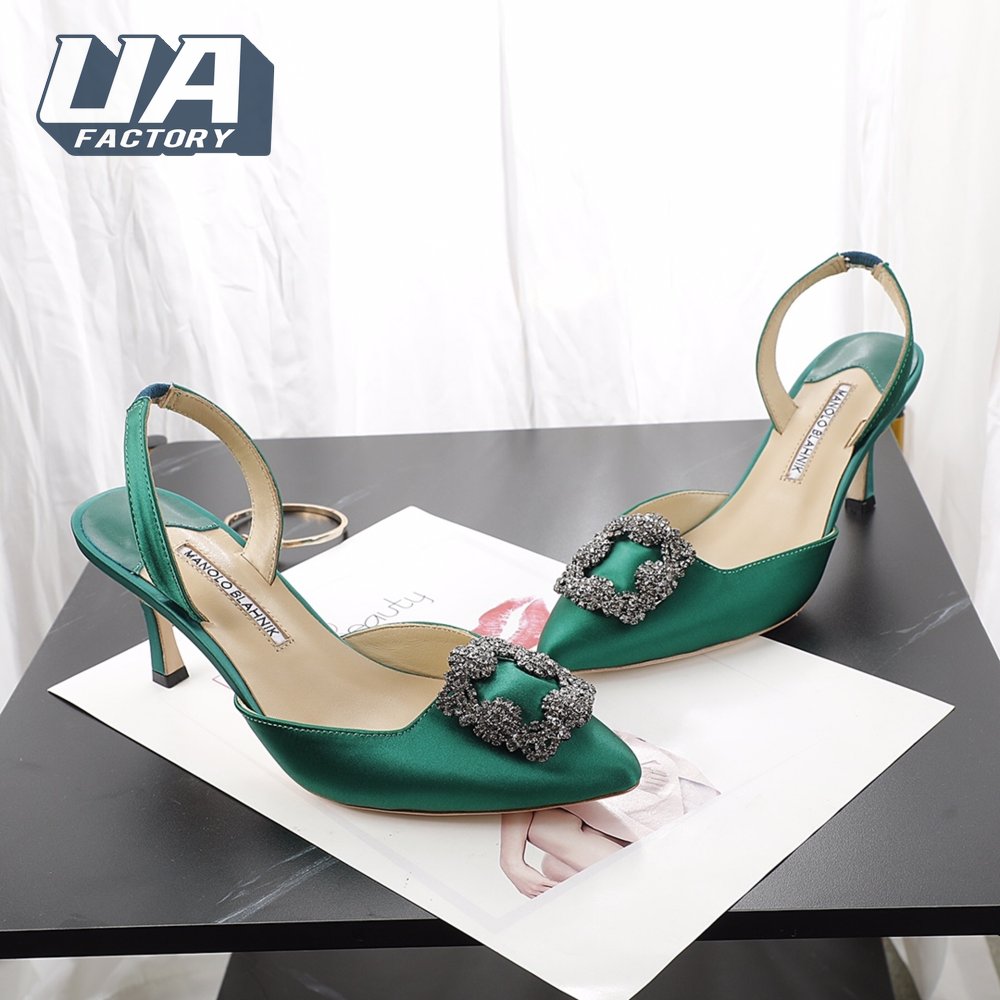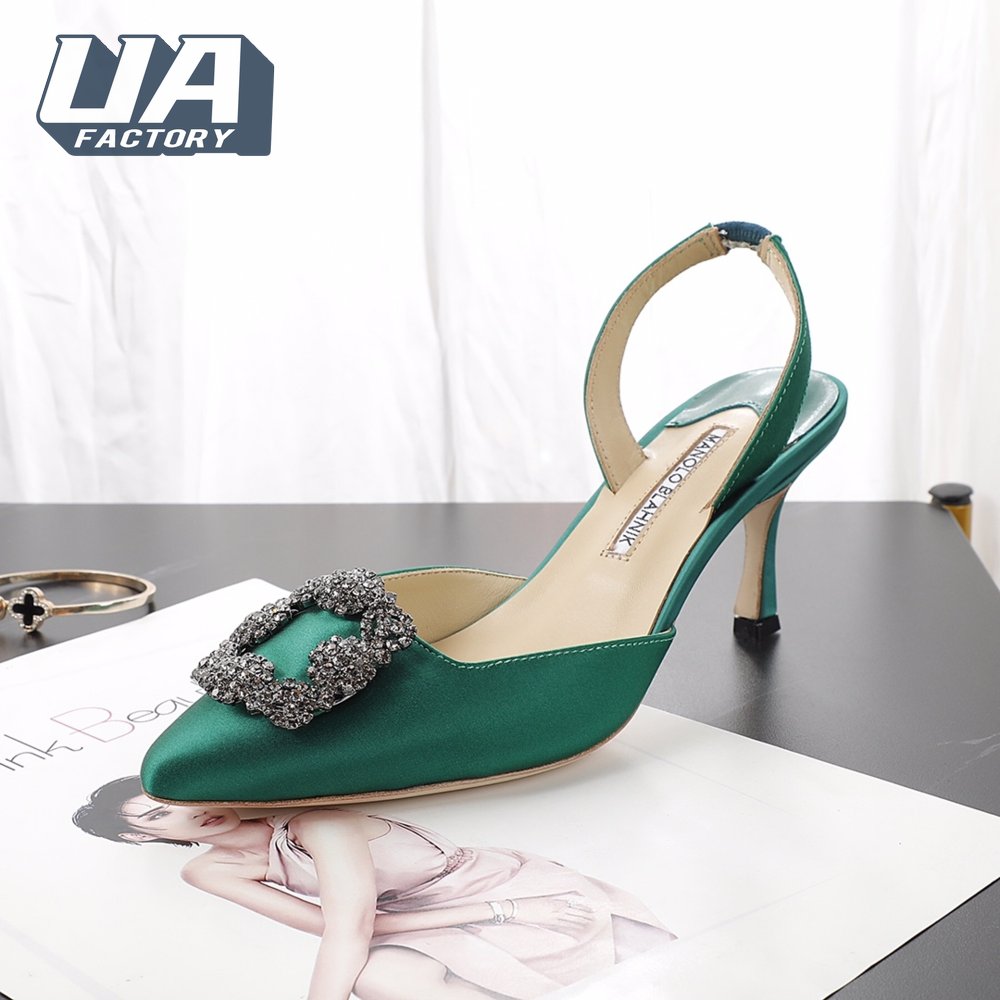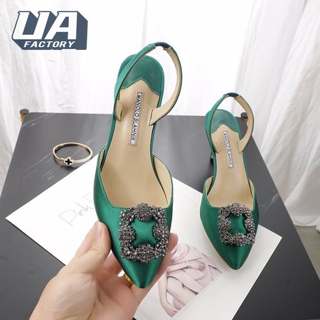 Manolo Blahnik Green Satin Jewel Buckle Slingback Pumps 35-42
