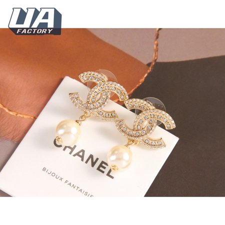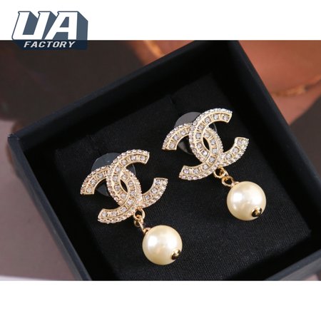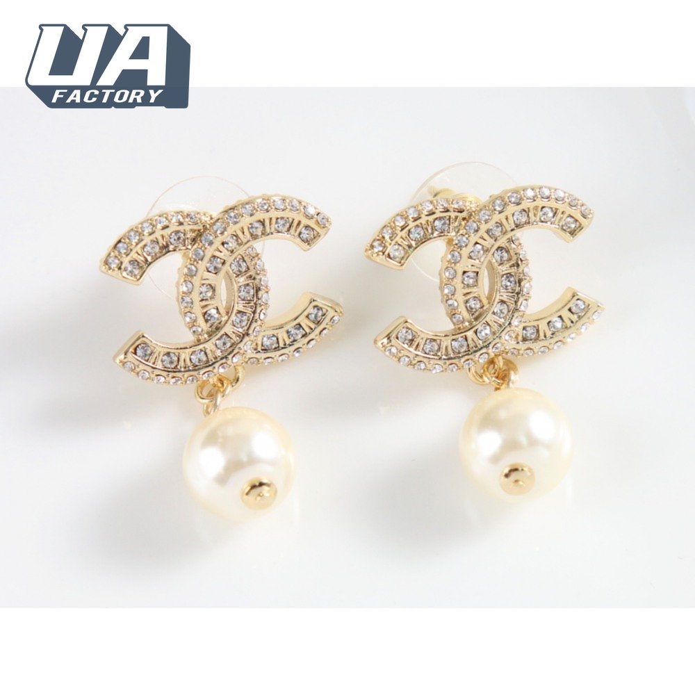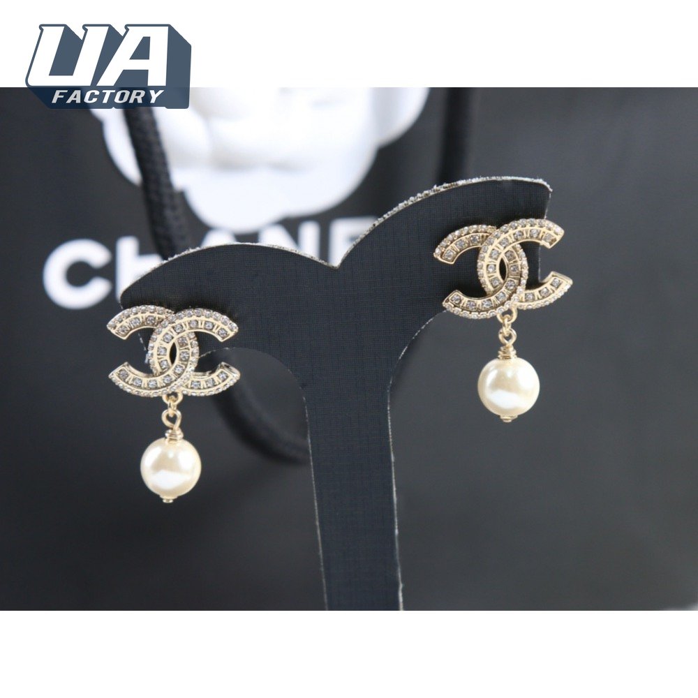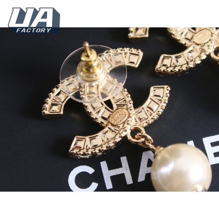 Chanel CC Drop Earrings Crystal Pearl Gold